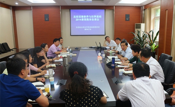 课程负责人郁树廷对北京高教学会思想道德修养与法律基础研究会的暑期备课会进行了情况通报,并介绍了下学期2014级的教学安排,以及慕课试点班的情况。随后,兼职教师纷纷就授课的经验和心得展开讨论。学生处处长武立勋提到,网络时代给思政课教师带来了极大的挑战,要应对这种挑战,就要改变原有的教学方式,通过对热点问题的独到评论来引导学生;将社会主义核心价值观融入所讲的专题;针对慕课这一新生事物,相应的配套措施如多媒体教室等要予以保证;继续发挥《优秀大学生成长手册》对大一新生的指导作用,将其内容融入基础课教学中。研究生管理处处长雷晓锋在发言中指出,思政课是培育和宣传社会主义核心价值观的主渠道,要在大一新生的“新”字上下功夫,引导学生培养正确的世界观、人生观和价值观。梁国栋老师以“为人民服务”的专题为例,介绍了在授课过程中应该如何启发和引导学生独立分析和思考问题,如何将理论融入实践和大学生的具体生活中。刘睿老师则就大学生的环境适应问题提出了自己的想法,要激发学生更好的适应环境,提高学生学习的主观能动性。
